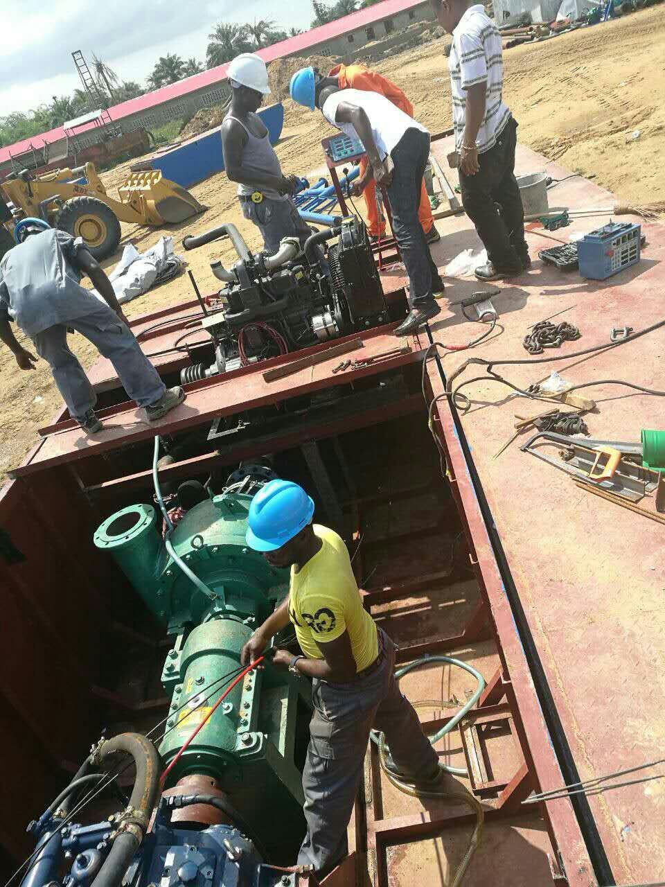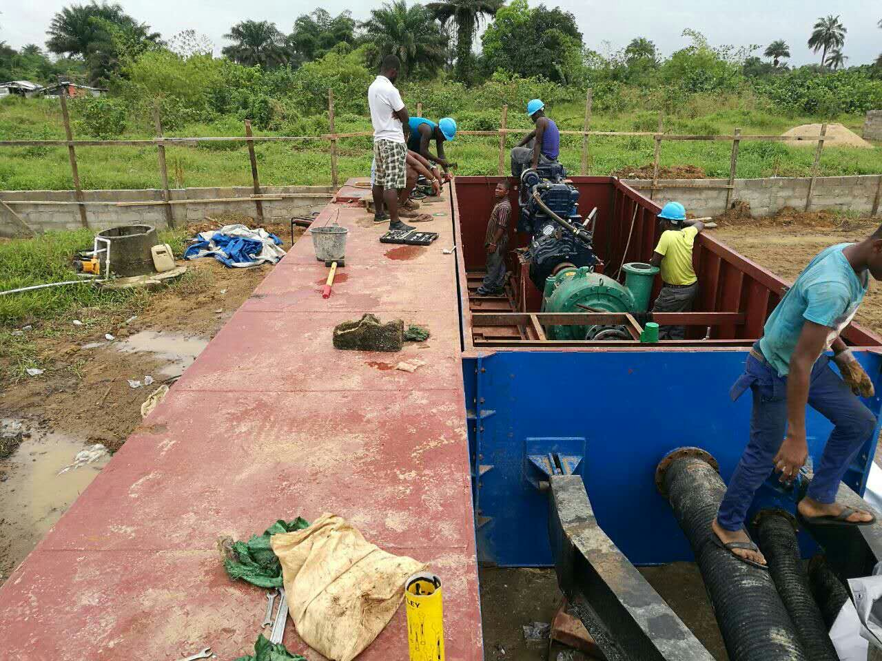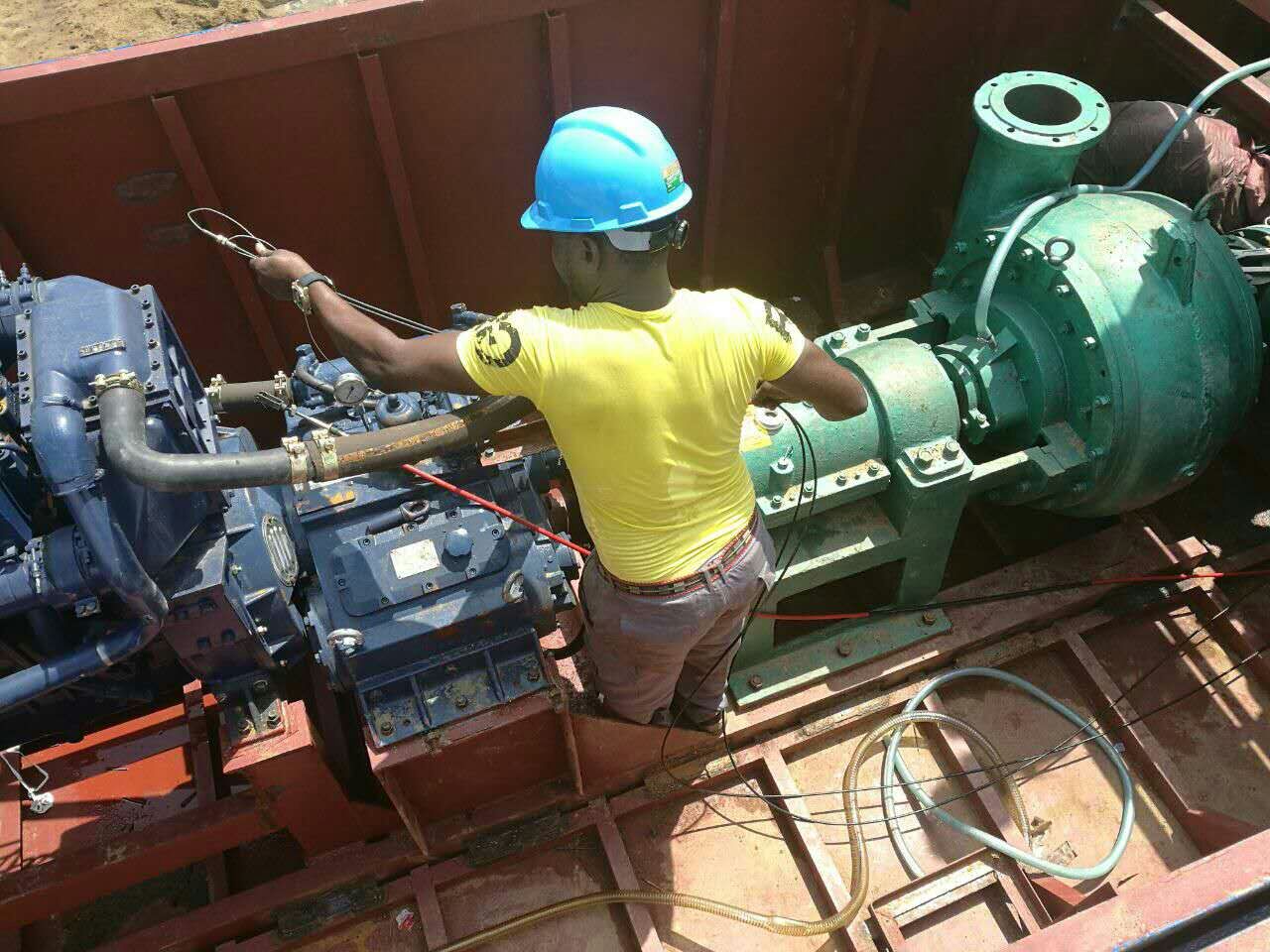 發(fā)往西部非洲##利比里亞的射吸式抽沙船正在緊張安裝中。本設(shè)備抽沙深度為15米,每小時(shí)可抽沙150立方米,排出距離250-300米,適合于水面面積比較大的河道、湖泊、水庫等場(chǎng)地的抽沙、清淤工作。