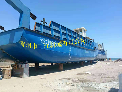 鋼質(zhì)帶跳板自航甲板駁船,可以滿足近海水深不超過(guò)2米的淺水水域貨物接駁要求,或者內(nèi)河與近海的聯(lián)運(yùn)。